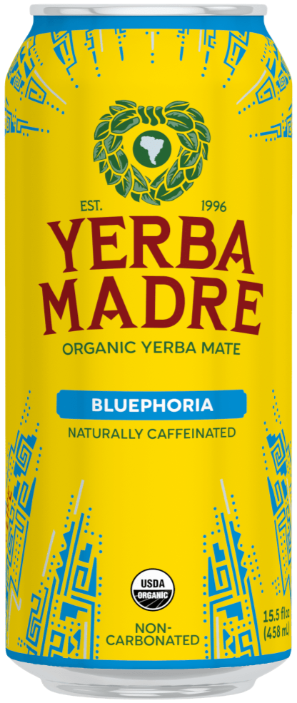 Yerba Madre Organic Yerba Mate, Energy Drink Alternative, Bluephoria, 150mg Natural Plant Based Caffeine, Better for You Energy & Focus, No Jitters or Crash, 15.5 Oz (Pack of 12)