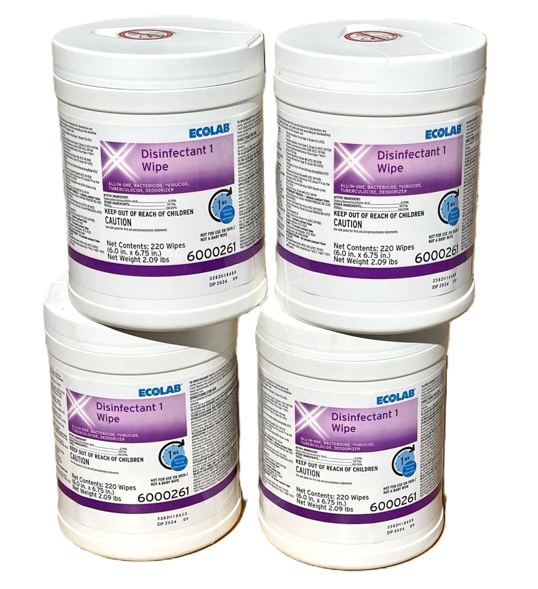 Ecolab Disinfectant 1 Wipe 6.0in x 6.75in, 220 Wipes, 4 CANS, EXP: 11/2024- 6000261