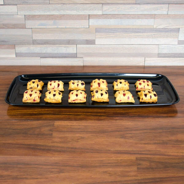 Sabert Mozaik 9″ x 22″ Black Plastic Rectangle Platter / Catering Tray – 25 Units Per Case