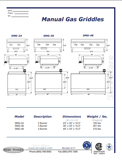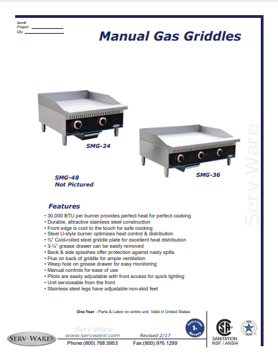 Serv Ware 1 Burner Manual Gas Griddle SMGS-12 13.2 inches