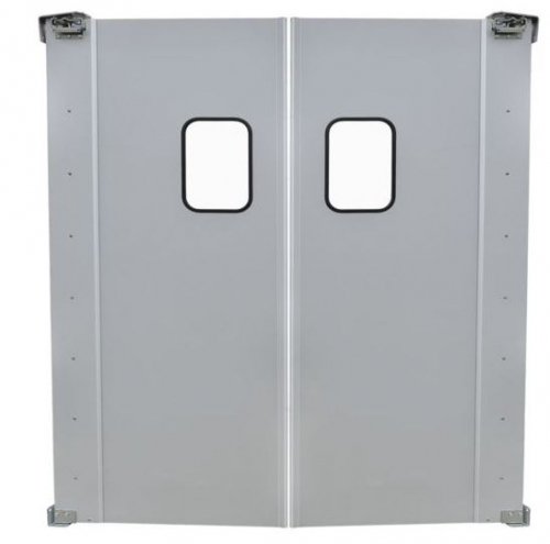 Prepline 60″ x 84″ Double Aluminum Swinging Service Traffic Door with 9″ x 14″ Window