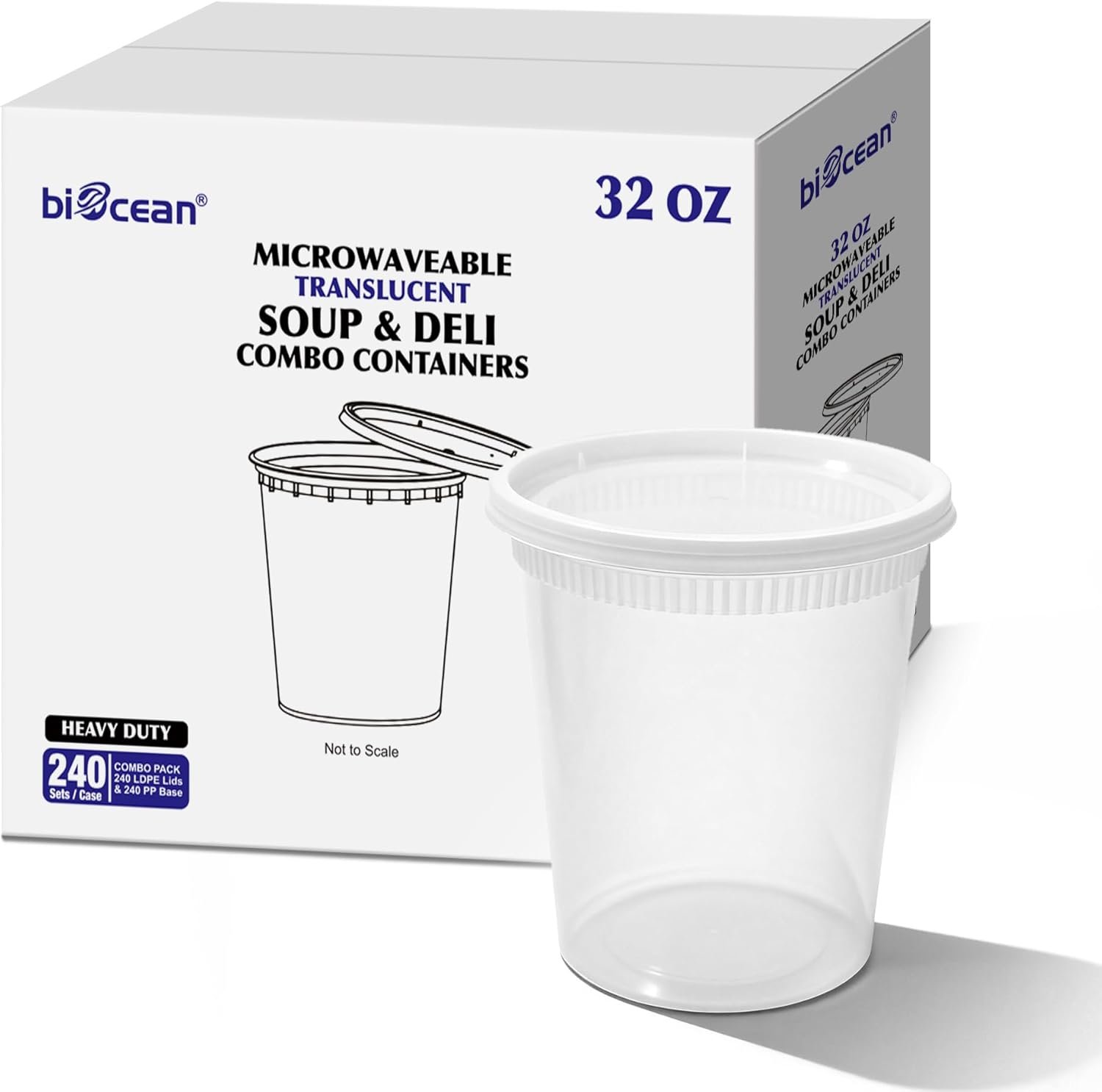 ITEM: Biocean 32oz Microwaveable Translucent Soup & Deli Combo Containers – 240 Combo pack