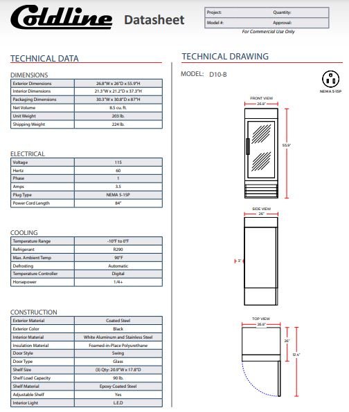 Item: Coldline D10-B 27? Single Glass Swing Door Merchandiser Freezer – Black