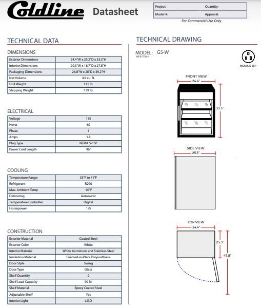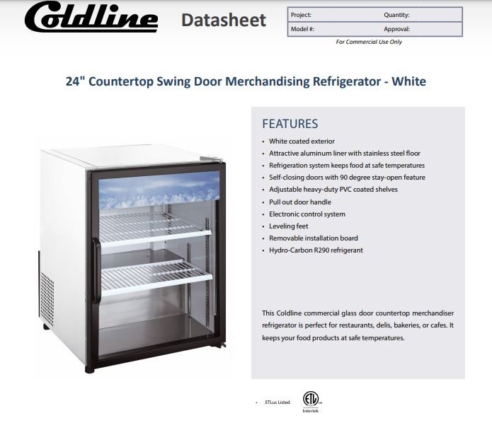 Item: Coldline G5-W 24″ Countertop Swing Door Merchandising Refrigerator – White