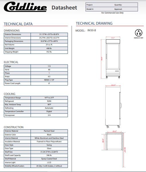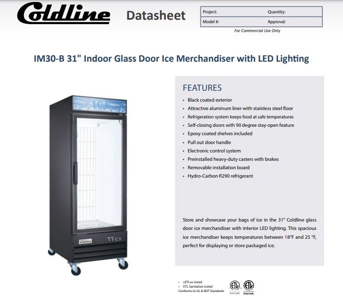 Item: Coldline IM30-B 31″ Indoor Glass Door Ice Merchandiser with LED Lighting