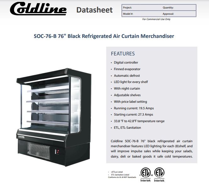 Item: Coldline SOC-76-B 76″ Black Refrigerated Air Curtain Merchandiser