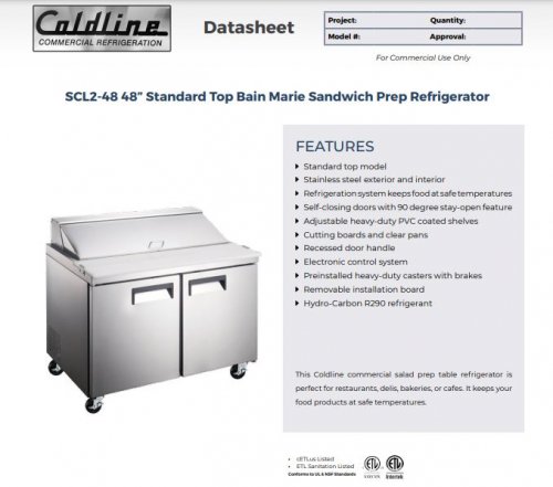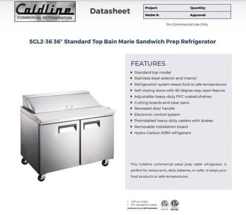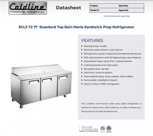 Item: Coldline SP60 60″ Bain Marie Sandwich Prep Table – 16 Pans