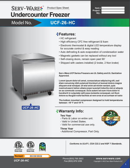 The Coldline UC 72″ is an excellent refrigerator for any under-counter or worktop application. This 3 door unit provides 15.5 cubic feet of storage and a thick 72″ stainless steel work surface. Wheels, adjustable shelves, and self-closing doors come standard on all units. Optional small casters will reduce height by 1″. Eco-friendly R290 refrigeration system maintains 33-41 degree temperature to keep your food in the safe zone.