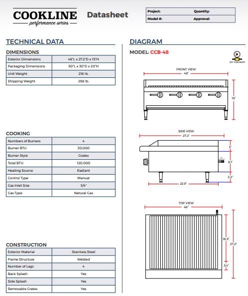 Item: Cookline CCB-48 48″ Gas Countertop Radiant Charbroiler