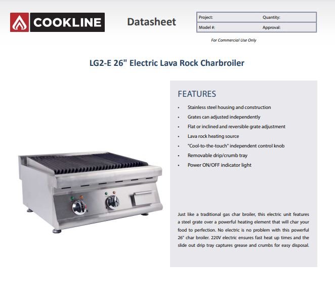 Item: Cookline LG2-E 26″ Electric Lava Rock Charbroiler – 7200W