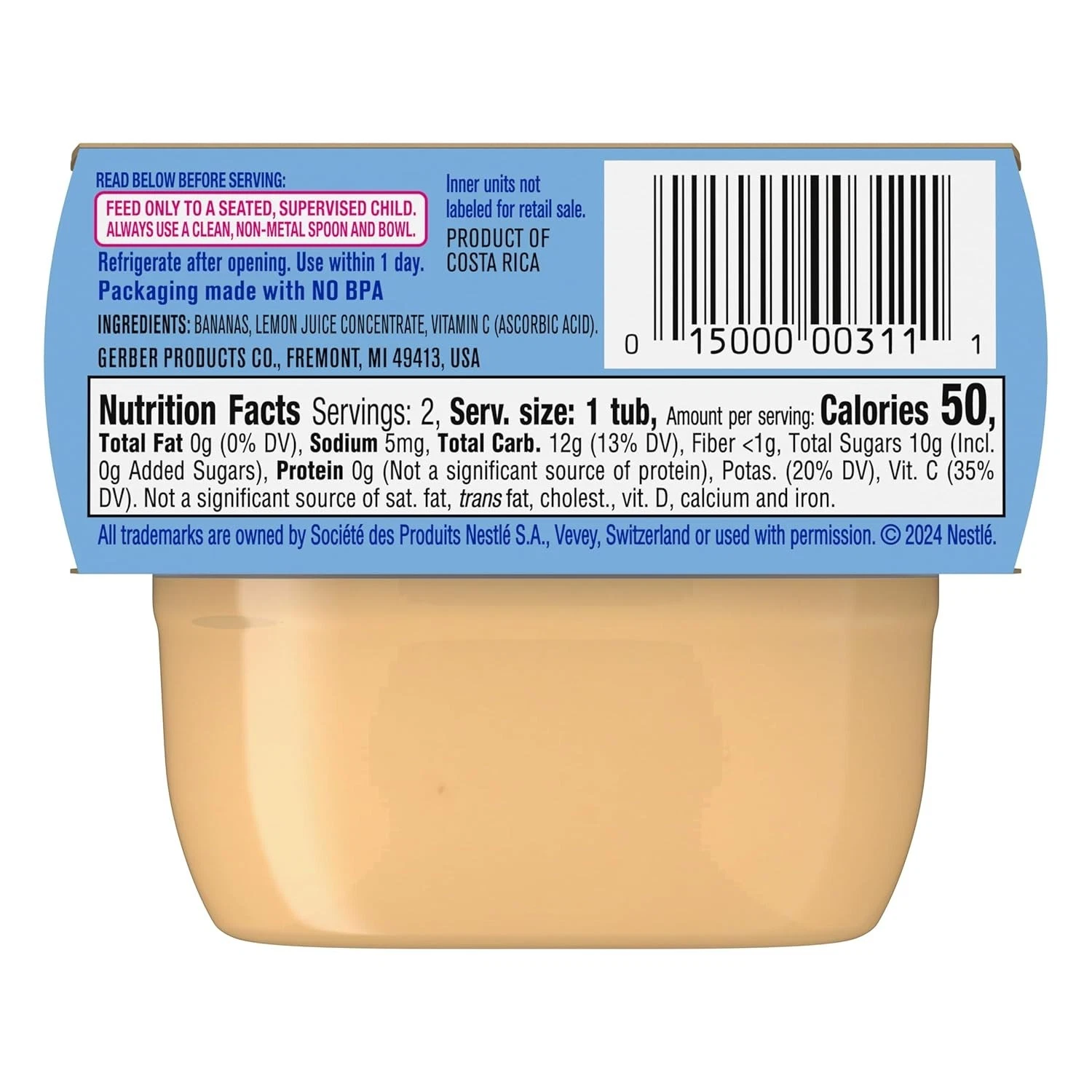 Gerber Stage 1 Baby Food, Banana Puree Tubs, No Artificial Colors or Flavors, Baby Puree, 16-Pack (EXP: MAY 31/2026)