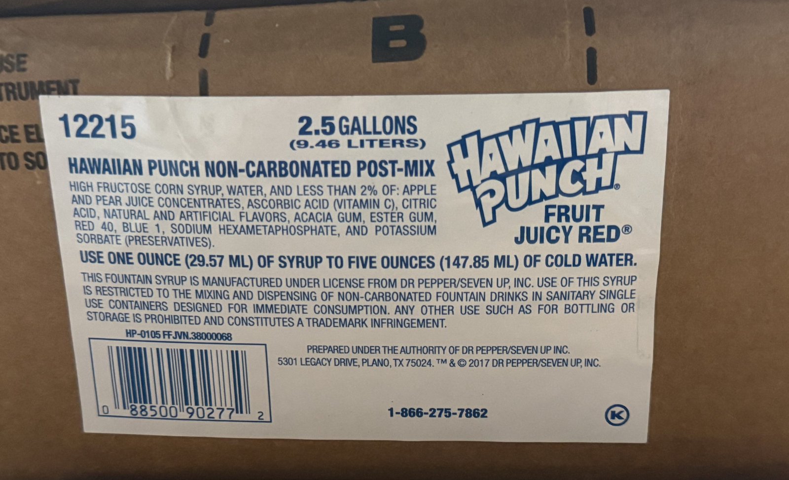 ITEM: Hawaiian Punch Beverage Concentrate, Fruit Juicy Red, 2.5 Gallon Bag‑in‑Box
