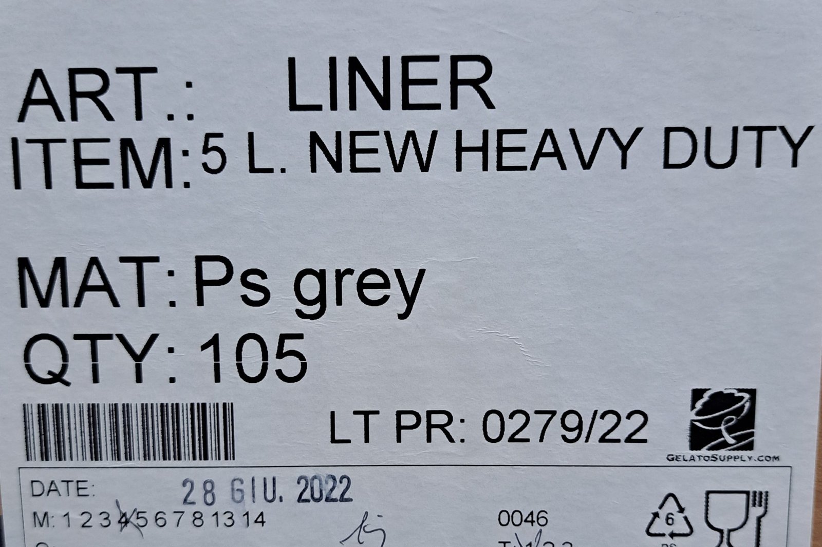 Ice-Cream/Gelato pan liner 5 L. Gray (105/case)NEW
