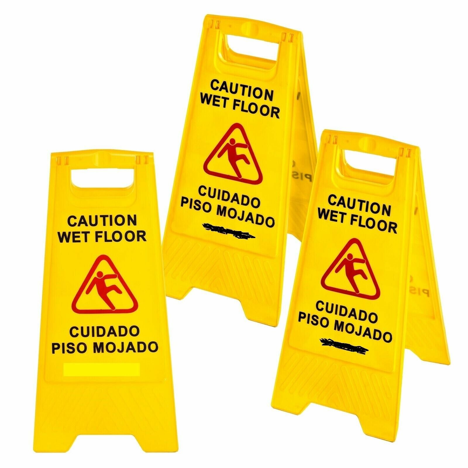 Industries Yellow 24″ Caution Wet Floor Sign Set of 3 CUIDADO PISO MOJADO