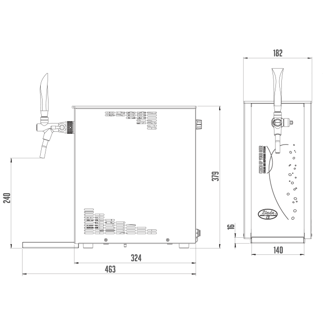 - EQUIPMENT – The standard supplied parts are the thermostat enabling continuous and precise regulation of the beverage temperature, tap(s), tap wrench, drip tray and quick fittings for easy connection.