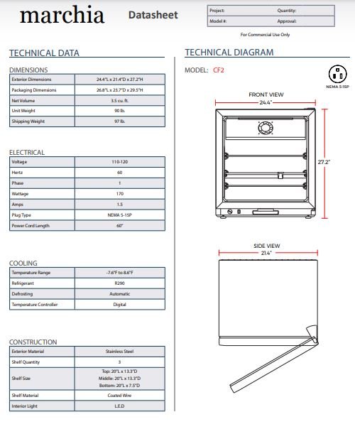 Item: Marchia CF2 24? Compact Glass Door Freezer