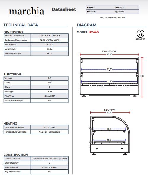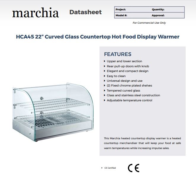 Item: Marchia HCA45 22″ Curved Glass Countertop Hot Food Warmer Display Case