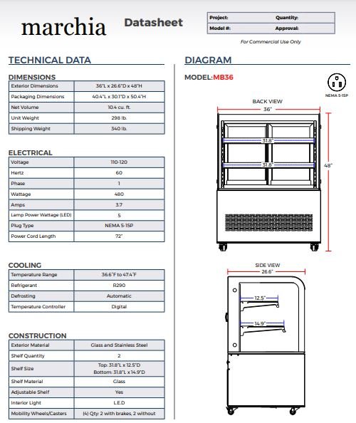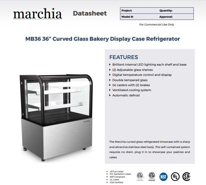 Item: Marchia MB36 36″ Refrigerated Bakery Display Case