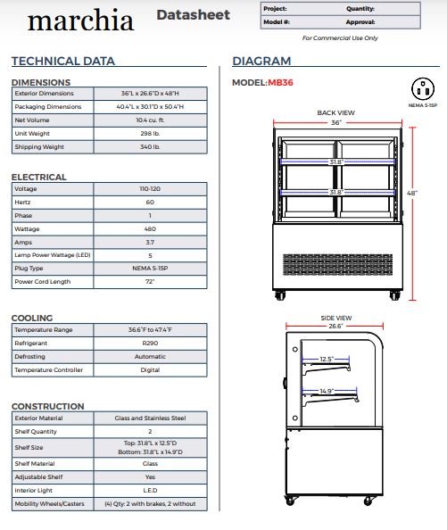 Item: Marchia MB36-W 36″ Refrigerated Bakery Display Case