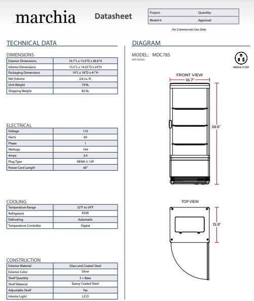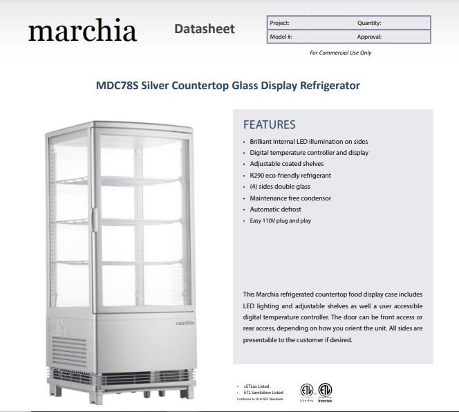 Item: Marchia MDC78S Silver Countertop Refrigerated Glass Display Case with LED Lighting