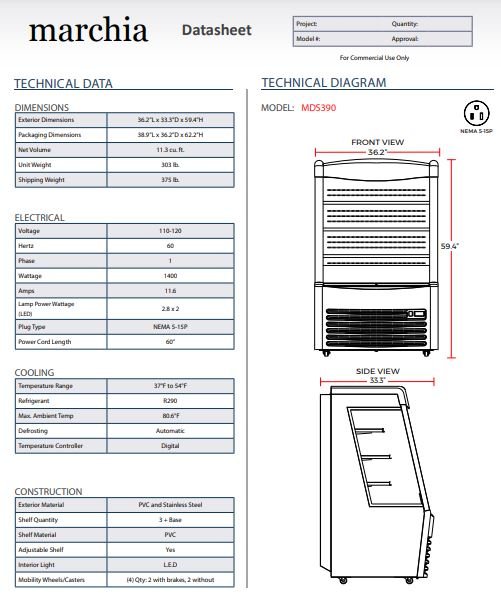 Item: Marchia MDS390 36″ Open Refrigerated Merchandiser Grab and Go Display Case – Black