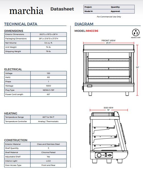 Item: Marchia MHCC96 27″ Heated Countertop Display Front and Rear Access Doors