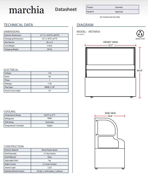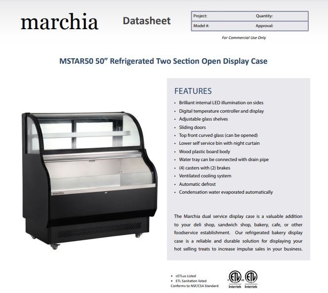 Item: Marchia MSTAR50 50″ Refrigerated Open Display Case with Refrigerated Glass Top