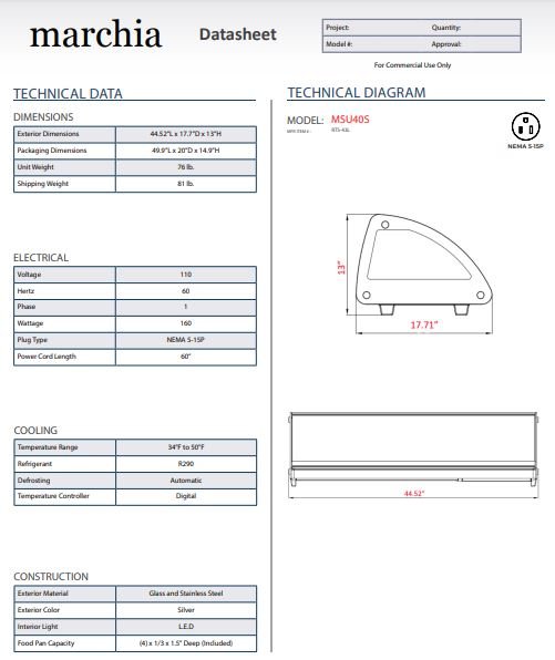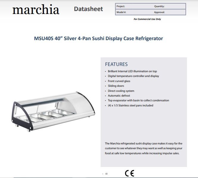 Be the first to review “Marchia MSU40S 45″ Refrigerated 4-Pan Sushi Display Case, Silver”