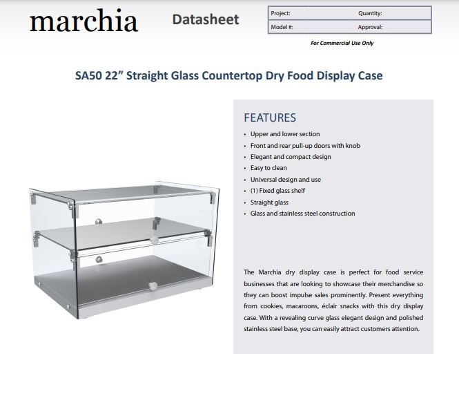 Be the first to review “Marchia SA50 22″ Straight Glass Countertop Dry Display Case”