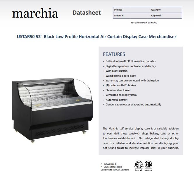 Item: Marchia USTAR50 52″ Black Low Profile Horizontal Display Case Merchandiser