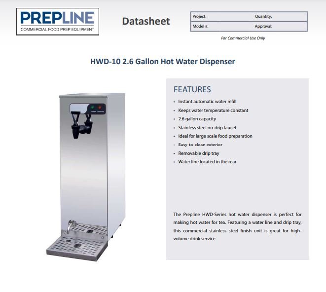 Item: Prepline HWD-10 2.6 Gallon Hot Water Dispenser – 110V