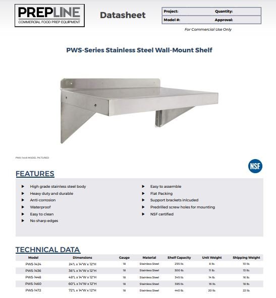 Get this PWS-1460-PR 14″D x 60″L Stainless Steel Wall-Mount Shelf with Pot Rack shipped to you – lowest price guaranteed. Buy now!