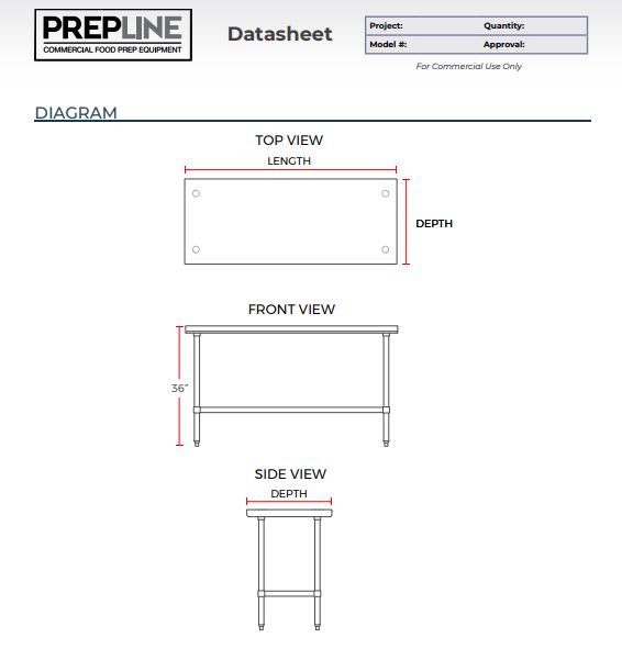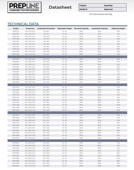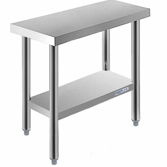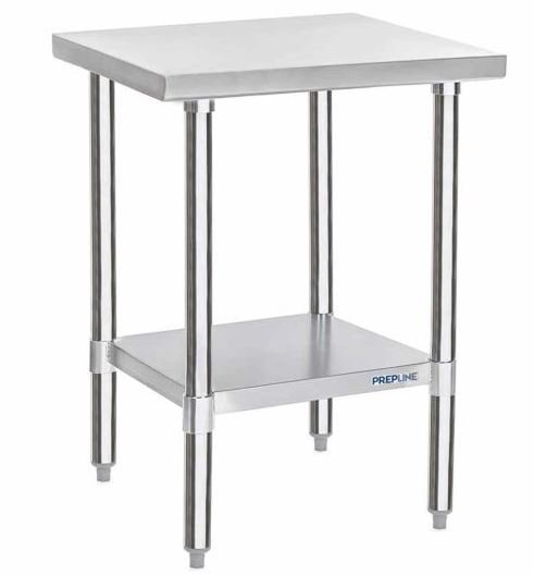 The Prepline PWTG is our most popular line of stainless steel worktable. This prep table is 14″D (front to back) x 24″L (left to right) with an adjustable height of 35 to 36″ With the best quality to price ratio in the industry these commercial worktables allow you to prepare foods, operate countertop slicers or mixers, and store heavy items with easy. The Prepline PWTG series is more than strong enough for the most demanding commercial uses.Prepline PWTG series stainless steel worktables shipped boxed and assemble in minutes with included screws and allen wrench. These heavy duty worktables feature high grade stainless steel work surface with an adjustable galvanized steel undershelf and extra durable leg and socket design to prevent lateral movement. The adjustable feet can raise or lower the unit by one inch and also make it easy to level on uneven surfaces.