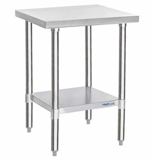 The Prepline PWTG is our most popular line of stainless steel worktable. This prep table is 24″D (front to back) x 24″L (left to right) with an adjustable height of 35 to 36″ With the best quality to price ratio in the industry these commercial worktables allow you to prepare foods, operate countertop slicers or mixers, and store heavy items with easy. The Prepline PWTG series is more than strong enough for the most demanding commercial uses.Prepline PWTG series stainless steel worktables shipped boxed and assemble in minutes with included screws and allen wrench. These heavy duty worktables feature high grade stainless steel work surface with an adjustable galvanized steel undershelf and extra durable leg and socket design to prevent lateral movement. The adjustable feet can raise or lower the unit by one inch and also make it easy to level on uneven surfaces.