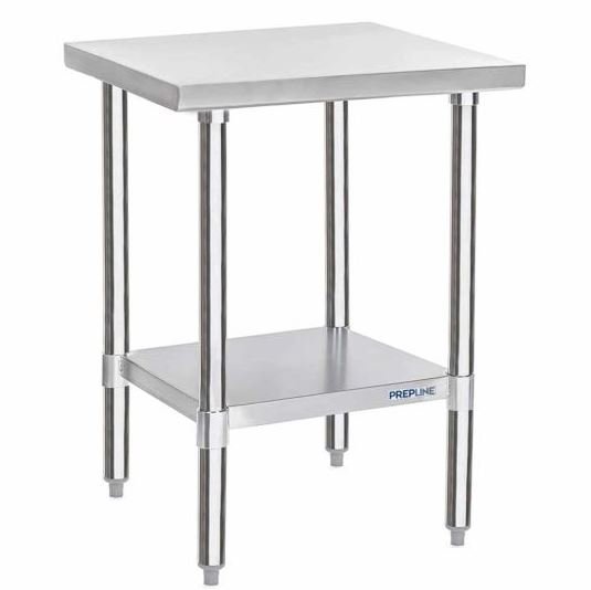 The Prepline PWTG is our most popular line of stainless steel worktable. This prep table is 30″D (front to back) x 24″L (left to right) with an adjustable height of 35 to 36″ With the best quality to price ratio in the industry these commercial worktables allow you to prepare foods, operate countertop slicers or mixers, and store heavy items with easy. The Prepline PWTG series is more than strong enough for the most demanding commercial uses.Prepline PWTG series stainless steel worktables shipped boxed and assemble in minutes with included screws and allen wrench. These heavy duty worktables feature high grade stainless steel work surface with an adjustable galvanized steel undershelf and extra durable leg and socket design to prevent lateral movement. The adjustable feet can raise or lower the unit by one inch and also make it easy to level on uneven surfaces.