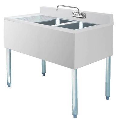 Item:Prepline Stainless Steel 2 Bowl Underbar Hand Sink with Faucet and Left Drainboard- 36″ x 18″