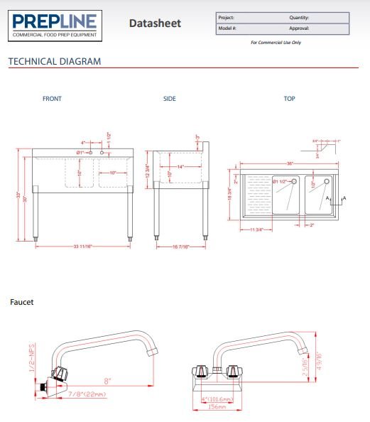 - Commercial 2 compartment hand sink