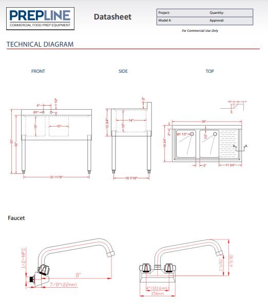 Conveniently wash your hands in between tasks and dry your barware with a bar sinks. Prepline hand sink is a great addition to your establishment because they provide an easy solution to keep beverageware clean. Featuring a 10″L x 10″D bowl and right drainboard, this Prepline hand sink includes 3″ backsplash, adjustable feet, pre-drilled faucet holes and comes with basket and drain, ideal for your busy bars, restaurants, pubs, and other drink service establishments.