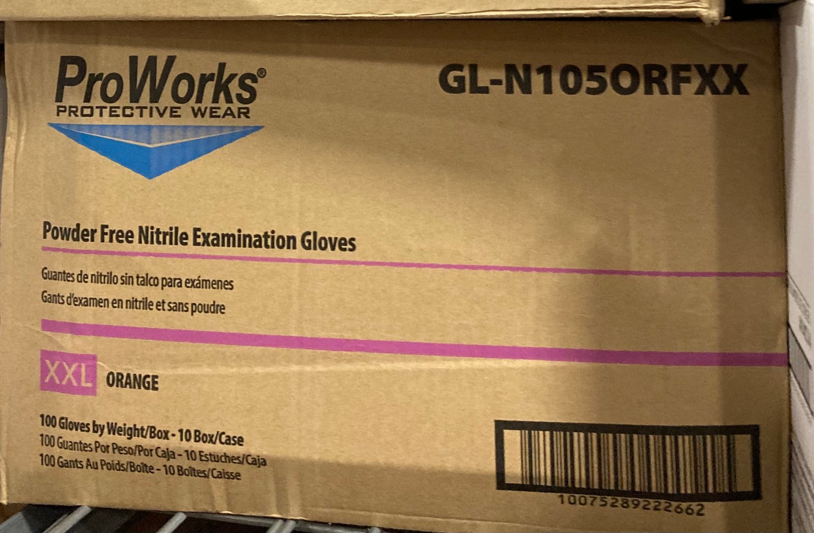 ITEM: ProWorks XXL Orange Nitrile Examination Gloves – Powder Free, 100 Count, 10 Boxes/Case