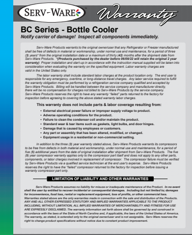 Serv-Ware BC Series Bottle Coolers are UL Safety and UL Sanitation Approved.
