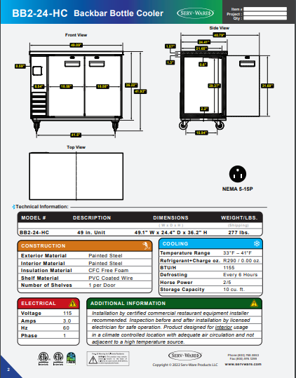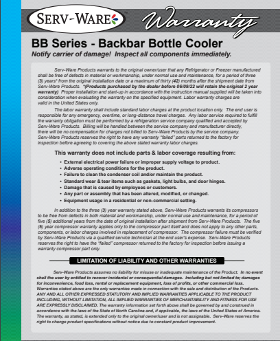 Serv-Ware Back Bar Bottle Cooler BB2-24-HC 10 cu. ft.