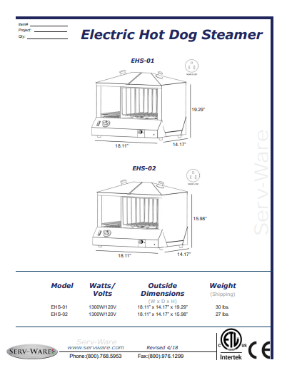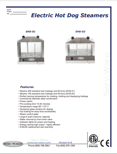 Serv-Ware Electric Hot Dog Steamer EHS-01