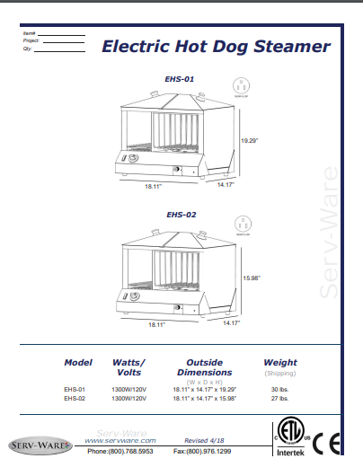 Serv-Ware Electric Hot Dog Steamer EHS-02