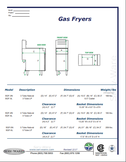 Serv-Ware Gas Fryer SGF-40L 3 Tube LP Gas