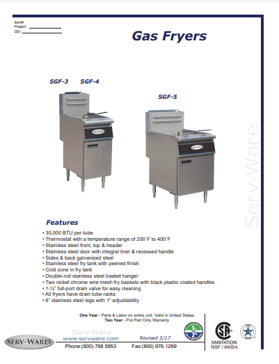 item : Serv-Ware Gas Fryer SGF-50L 4 Tube Natural Gas