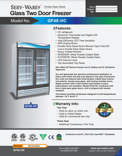 Serv-Ware Glass Double Door Reach-In Freezer GF48-HC 49 cu. ft.
