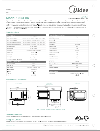 Serv-Ware Light Duty Commercial Microwave Oven 1025F0A