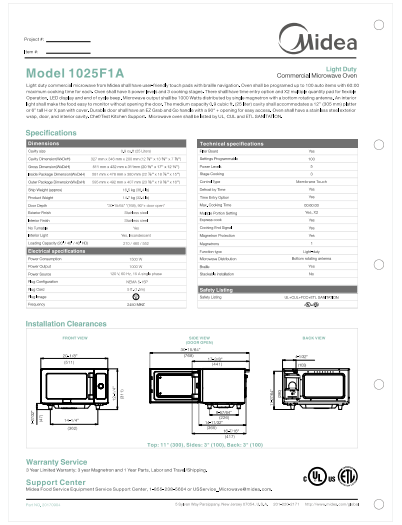 item : Serv-Ware Light Duty Commercial Microwave Oven 1025F1A