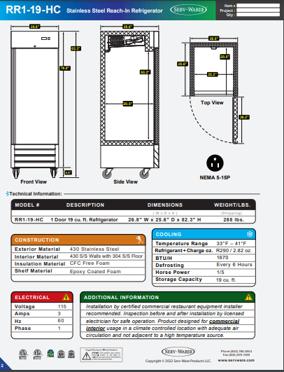 Be the first to review “Serv-Ware One Door Reach-In Refrigerator RR1-19-HC”