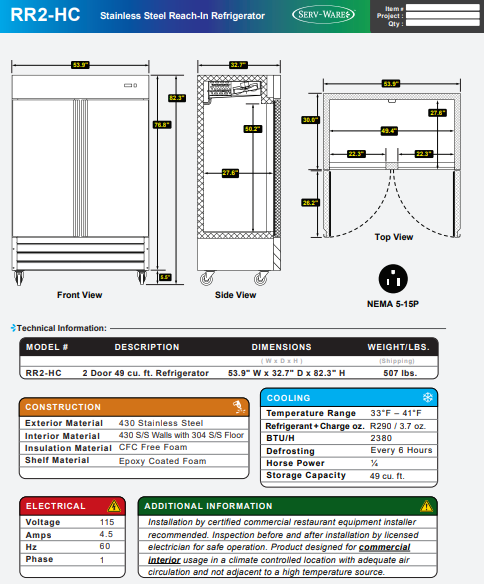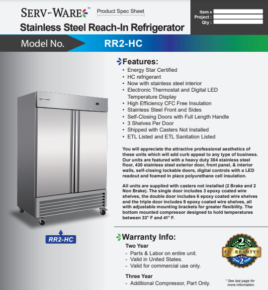 item : Serv-Ware One Door Reach-In Refrigerator RR2-HC